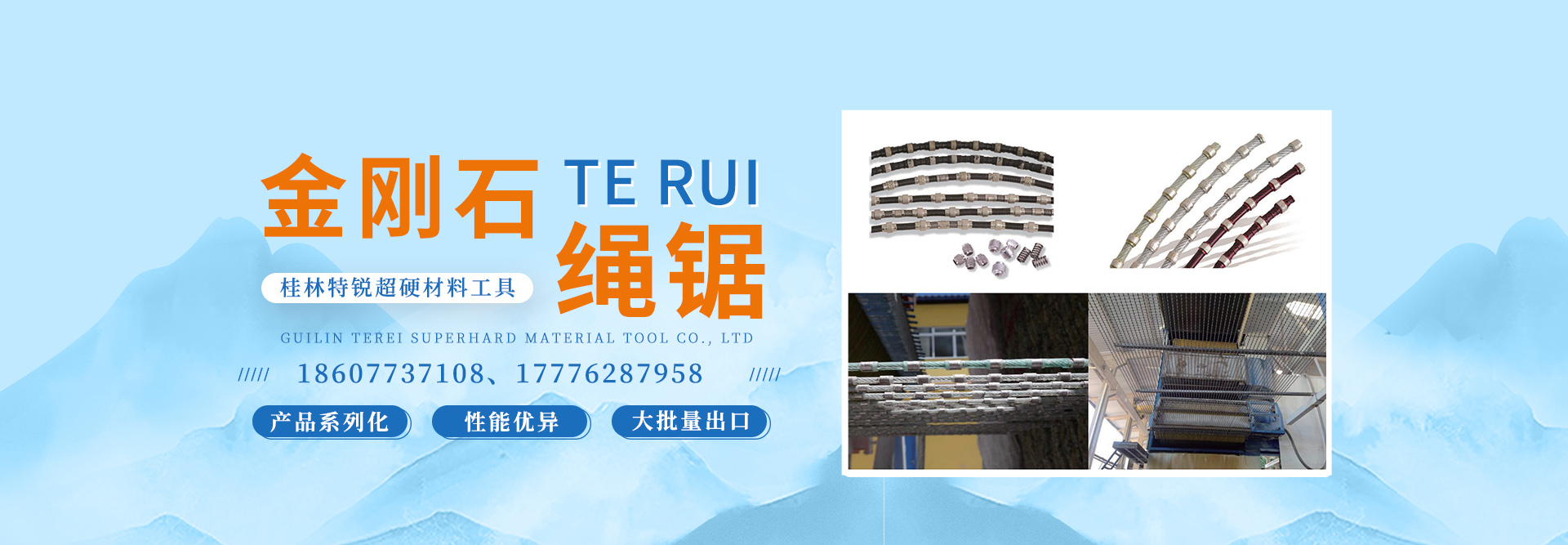 桂林特銳超硬材料工具有限公司具有三十年石材工具研發(fā)經(jīng)驗(yàn),十八年專注繩 鋸開(kāi)發(fā)團(tuán)隊(duì),二十年以上創(chuàng)業(yè)經(jīng)驗(yàn)的管理隊(duì)伍。一個(gè)熟悉的團(tuán)隊(duì)打造一個(gè)嶄新的品牌:桂林特銳。 桂林特銳超硬材料工具有限公司坐落于風(fēng)景優(yōu)美的桂林,專業(yè)生產(chǎn)金剛石繩鋸系列和金剛石工具相關(guān)的機(jī)械設(shè)備,公司擁有專業(yè)的金剛石工具研發(fā)團(tuán)隊(duì)、機(jī)械設(shè)備研發(fā)團(tuán)隊(duì)、石材礦山工程技術(shù)中心,公司現(xiàn)有員工近150人,是高新技術(shù)企業(yè), 擁有多項(xiàng)核心技術(shù)和自主知識(shí)產(chǎn)權(quán)。 公司秉承質(zhì)量?jī)?yōu)良,客戶至上的經(jīng)營(yíng)理念,開(kāi)拓創(chuàng)新,銳意進(jìn)取的企業(yè)精神, 充分滿足...